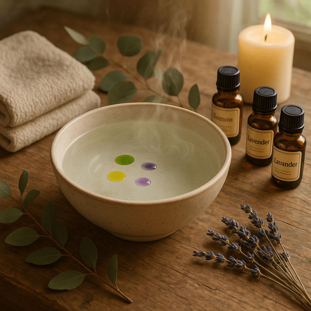 - Inhalation : Mélangez quelques petites gouttes d’eucalyptus dans un bol d’eau bien chaude. Laissez cette vapeur magique vous dorloter !